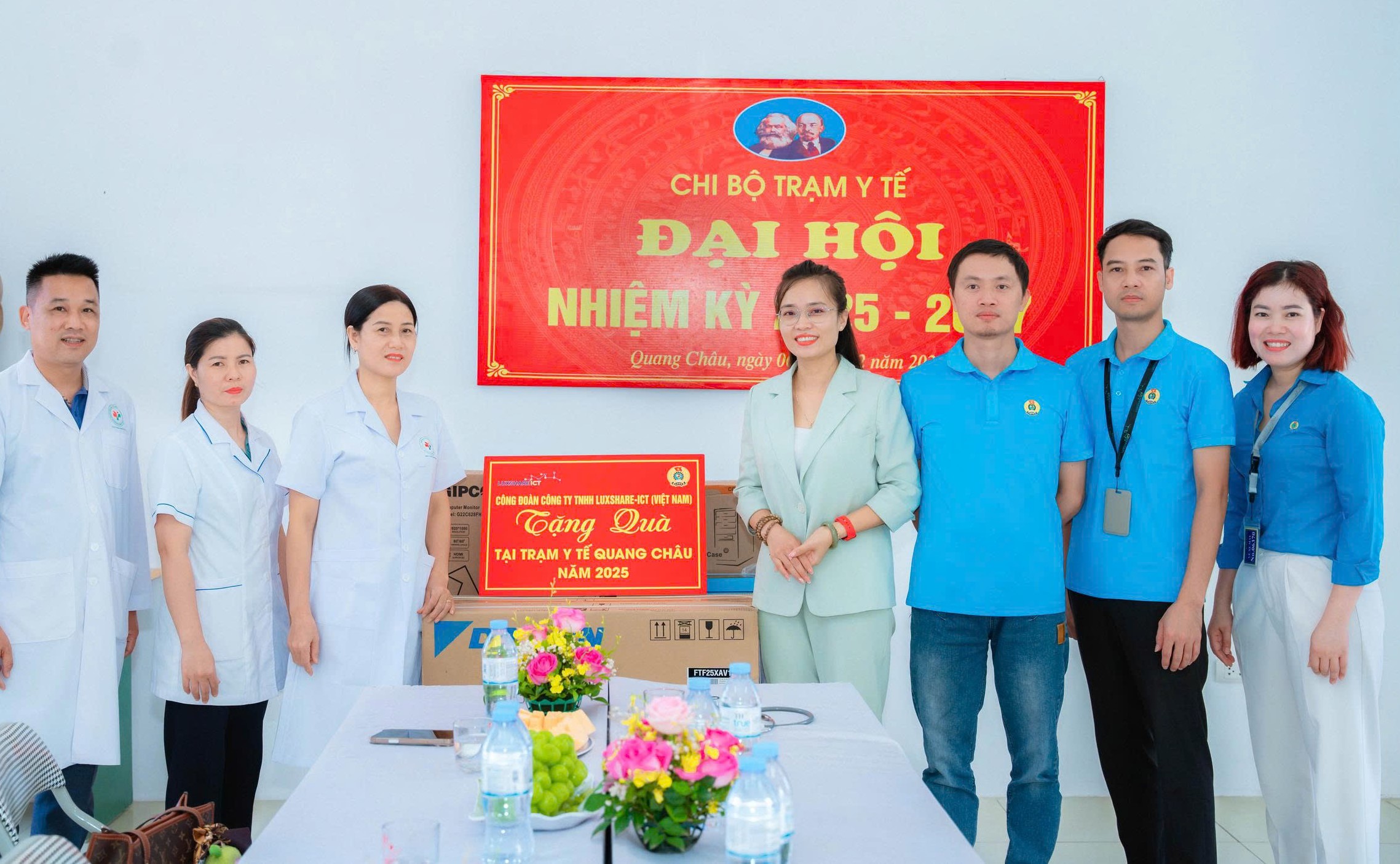 Sáng ngày 19/9/2025, BCH Công đoàn Công ty TNHH Luxshare-ICT (Việt Nam) phối hợp cùng Phòng Quan hệ Lao động Quang Châu đã đến thăm và trao tặng 02 chiếc máy tính và 01 chiếc điều hòa cho Trạm Y tế Quang Châu.
