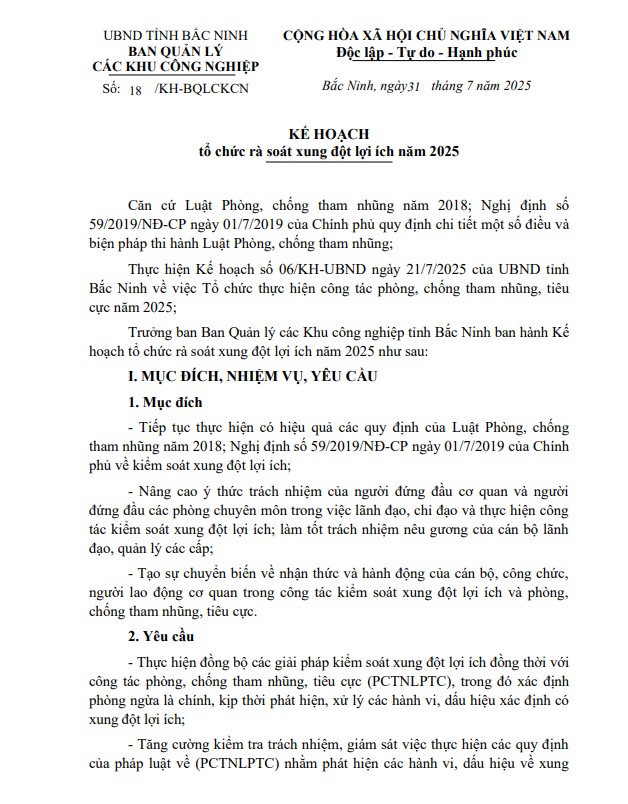 Kế hoạch Tổ chức rà soát xung đột lợi ích năm 2025